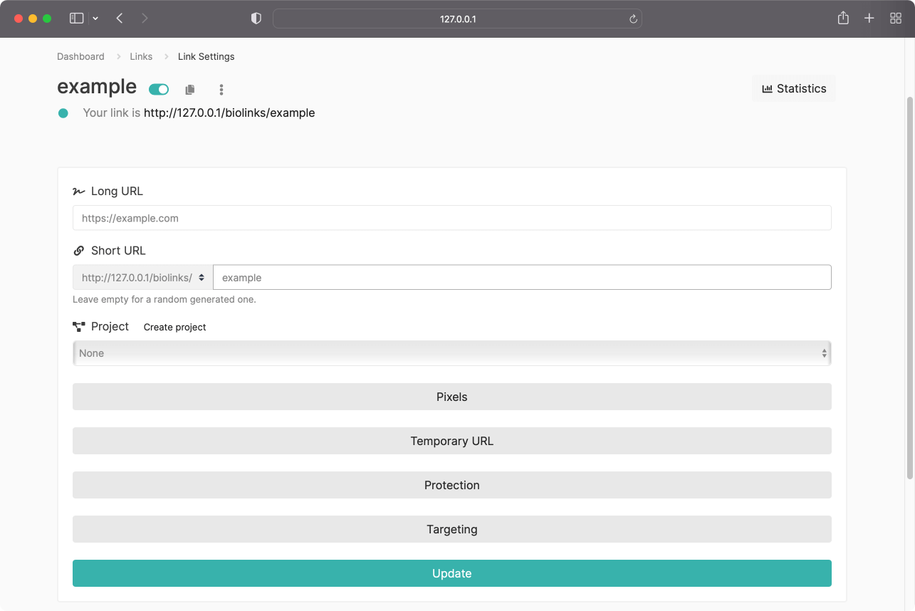 Shorten URLs, create bio link pages, custom QR codes, vcard links, file links & more.